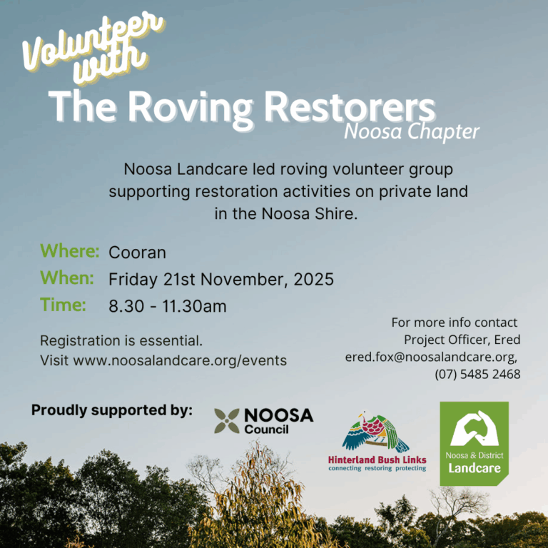 To cancel your event please email office@noosalandcare.org or call our office on (07) 5485 2468